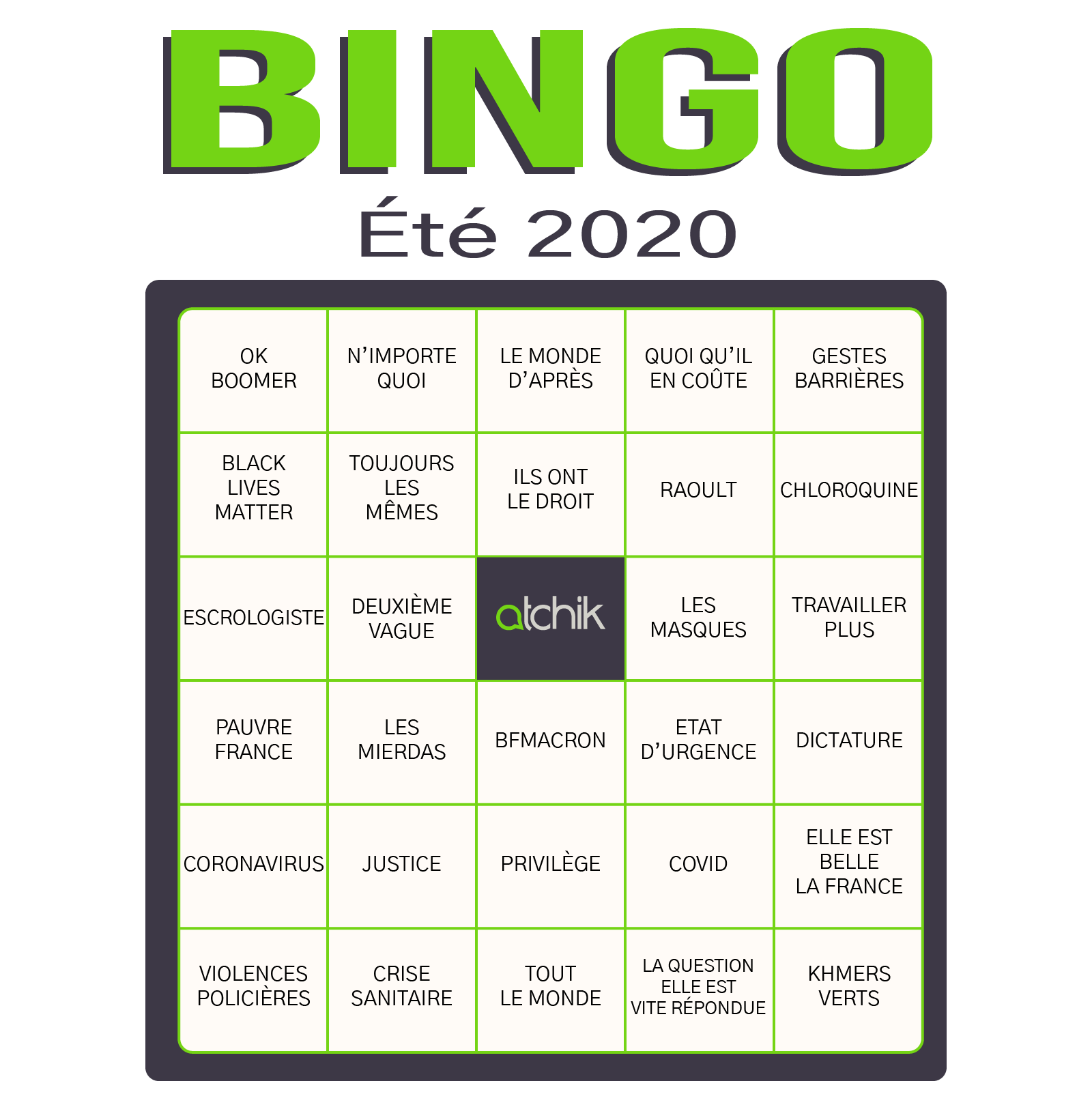Si 2020 ne ressemble clairement à aucune autre année connue de l'un d'entre nous, une chose est sûre : elle fait déjà parler, beaucoup parler. Elle est même, d'ailleurs, faite de nombreux commentaires en tous genres, avec une explosion des conversations sur les médias sociaux. Et si de nombreux nostalgiques nous demandaient, régulièrement, une nouvelle édition du bingo des commentaires, ce début d'été pas comme les autres offre le contexte idéal pour se relancer. Envie de vous amuser tout en suivant les tendances lourdes du web social et des réseaux sociaux ? C'est parti !