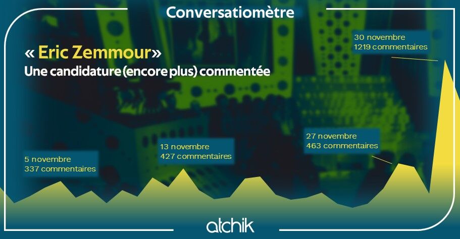 Car si le niveau de mentions s'avérait déjà très haut à l'origine sur les comptes de réseaux sociaux de médias que nous prenons en charge, les commentaires citant Eric Zemmour ou commentant un sujet y faisant référence ont connu un pic significatif après l'annonce de sa candidature.