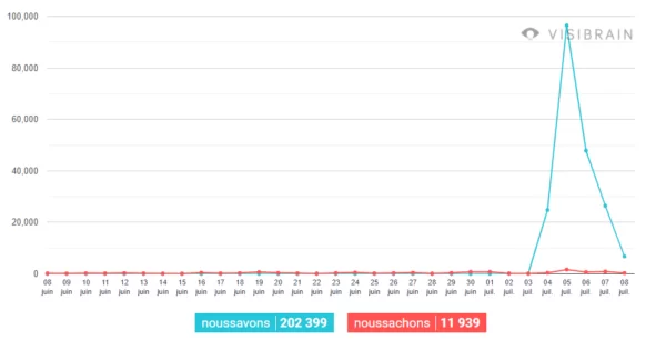 C'est historique : le 7 juillet, le dièse #NousSavons a pour la première fois dépassé #NousSachons. C'est peut-être un détail pour vous mais pour de nombreux observateurs, amateurs d'humour, debunkers et factckeckers en tous genres, cela veut dire beaucoup :
