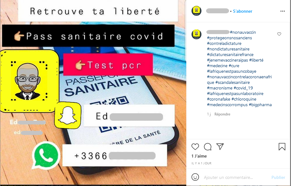 Si Twitter a, notoirement, servi de relais aux dealers pour vendre de la drogue et faire leur commerce sur Snapchat et Whatsapp, à l'abri des poursuites, on assiste à la même mise en scène marketing avec les faux passes sanitaires... Sauf que cette fois, Instagram est en première ligne.